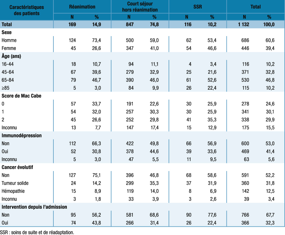 Tableau 3 : Caractéristiques des patients ayant une bactériémie acquise dans l’établissement selon le type de séjour. Enquête nationale de prévalence 2012, France