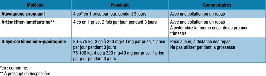Tableau 7 : Traitements curatifs antipaludiques présomptifs envisageables, chez l’adulte
