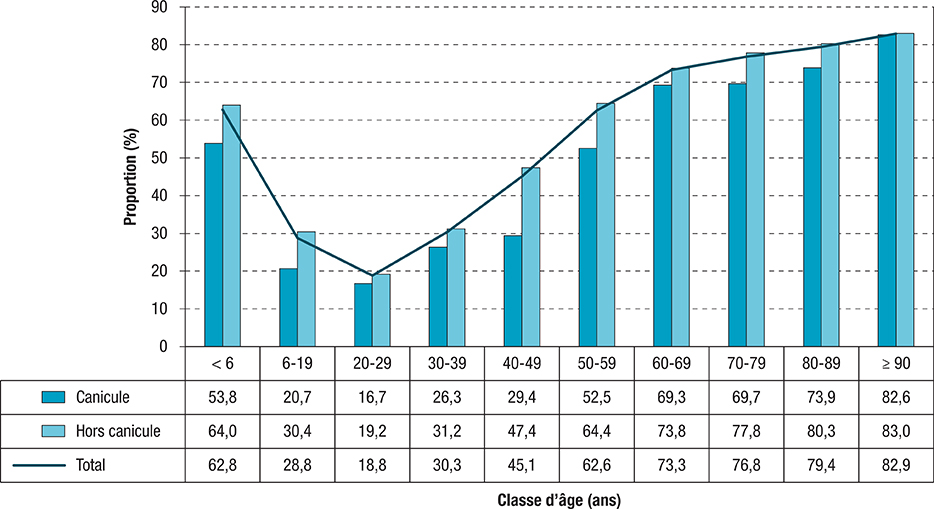 Dans l’article : Caractéristiques des passages aux urgences en période de surveillance canicule 2023