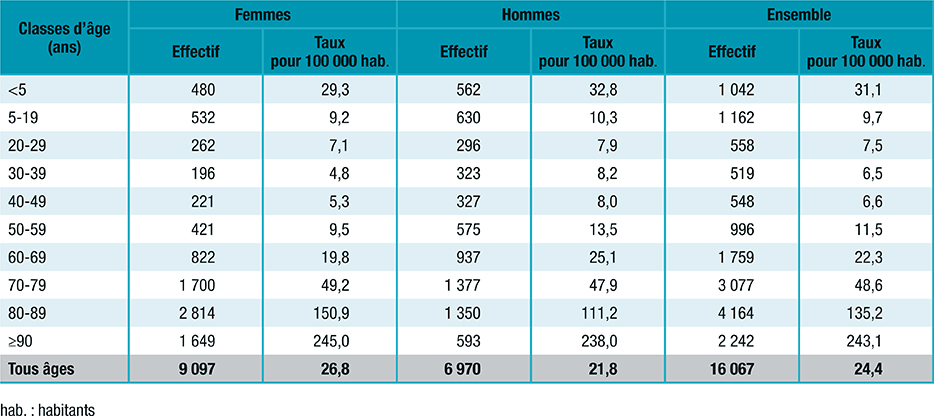 Tableau 1 : Taux de passages aux urgences pour iCanicule par sexe et classe d’âge, France hexagonale, du 1