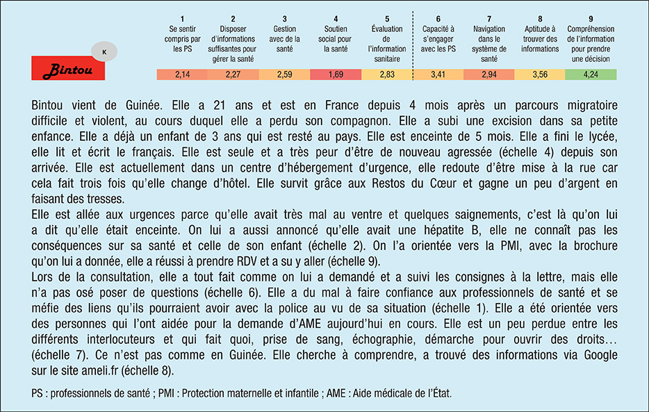Cela a conduit à la rédaction de la vignette présentant la situation d’une femme prénommée « Bintou » (encadré 2).