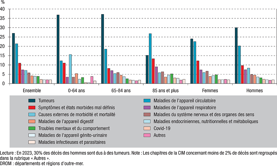 Grandes causes de mortalité en France en 2023 et tendances récentes