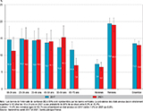Les scores moyens obtenus pour chaque item de l’échelle HAD sont présentés dans le tableau 1. En 2021, le score moyen d’anxiété obtenu à partir des réponses aux sept items de la sous-échelle HAD-A était de 6,46 (intervalle de confiance à 95%, IC95%: [6,33-6,59]) (sur un score total de 21). Il était supérieur chez les femmes (7,33 vs 5,52 chez les hommes ; p<0,001). Les items (symptômes) ayant les scores de fréquence les plus élevés étaient les mêmes pour les deux sexes (tableau 1).