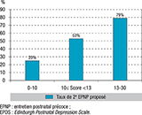 Plus de 94% des EPNP ont abouti à la réalisation du dépistage de la DPP par l’EPDS. Bien que l’échelle soit traduite et validée dans plusieurs langues, sa non-réalisation était liée à la barrière de certaines langues avec impossibilité de faire intervenir un interprète pour expliquer l’intérêt du dépistage et son mode de passation. Trois femmes sur 10 présentaient des signes modérés à majeurs de DPP (EPDS≥10), 1 femme sur 6 était fortement symptomatique (EPDS≥13). Le tableau 3 détaille la répartition des scores EPDS selon les 3 catégories.