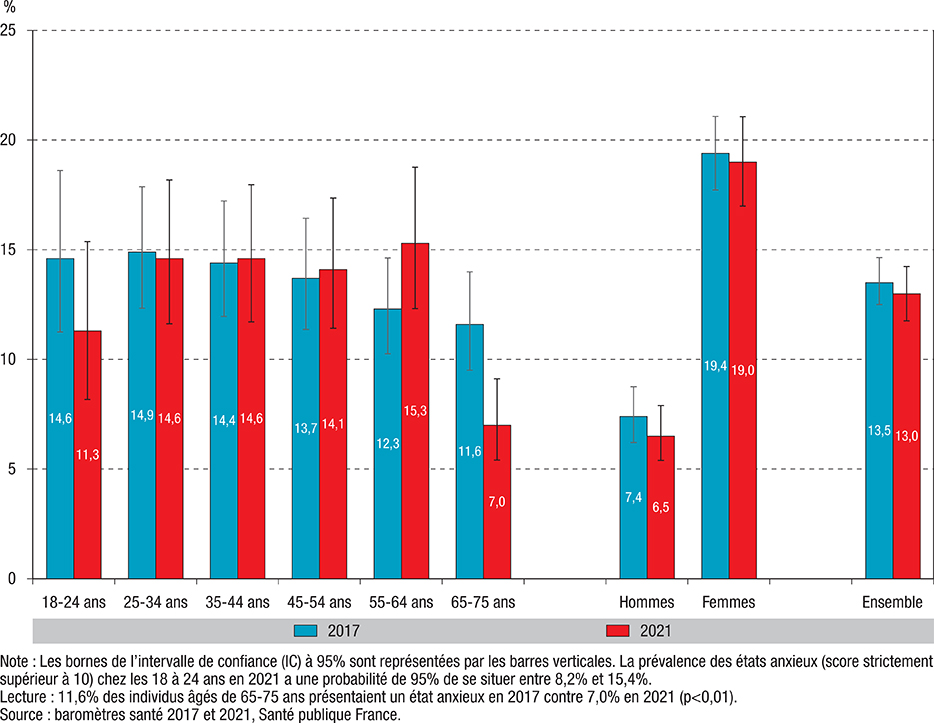 Dans l’article : Prévalence des états anxieux chez les 18-85 ans : Résultats du Baromètre Santé publique France (2017-2021)