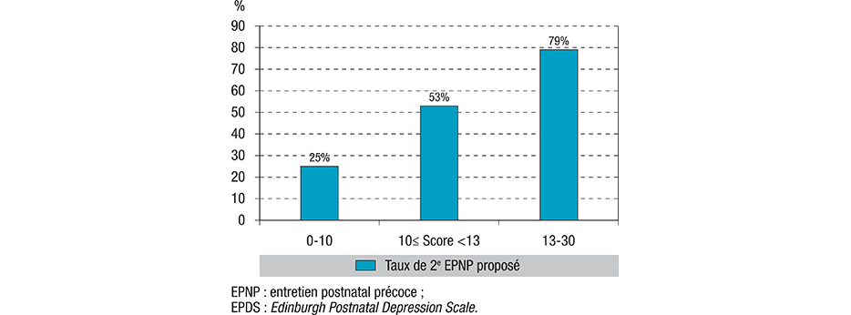 Figure : Fréquence de proposition d’un 2e EPNP selon le score EPDS (n=235, p-value<0,05)