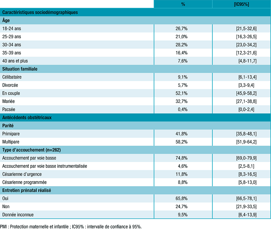 Tableau 1 : Caractéristiques des femmes de l’échantillon, étude départementale en PMI, Hérault, avril à septembre 2024 (n=263)