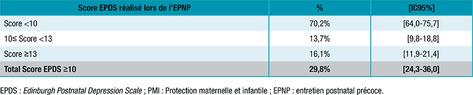 Tableau 3 : Répartition des scores EPDS, étude départementale en PMI, Hérault, avril à septembre 2024 (n=248)