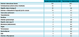 Les infections diagnostiquées étaient : l’infection tuberculeuse latente (ITL) (30,2% dont 40/109 ITL originaires de Guinée soit 36% et 25/109 originaires de Côte d’Ivoire soit 22%), la schistosomiase urinaire et/ou intestinale (14% dont 20/51 originaires de Guinée soit 39% et 17/51 originaires de Côte d’Ivoire soit 33%), l’hépatite virale chronique B (5,8%), l’infection à Chlamydia trachomatis de l'appareil génito-urinaire (4,1%), la tuberculose pulmonaire (1,3%), la tréponématose (1,1% dont 0,55% du pian), la giardiose (1,1%) et l’hépatite virale aiguë B (0,5%), la teigne (0,5%) (tableau 2). Aucun paludisme n’a été diagnostiqué car pas de point d’appel pour le rechercher.