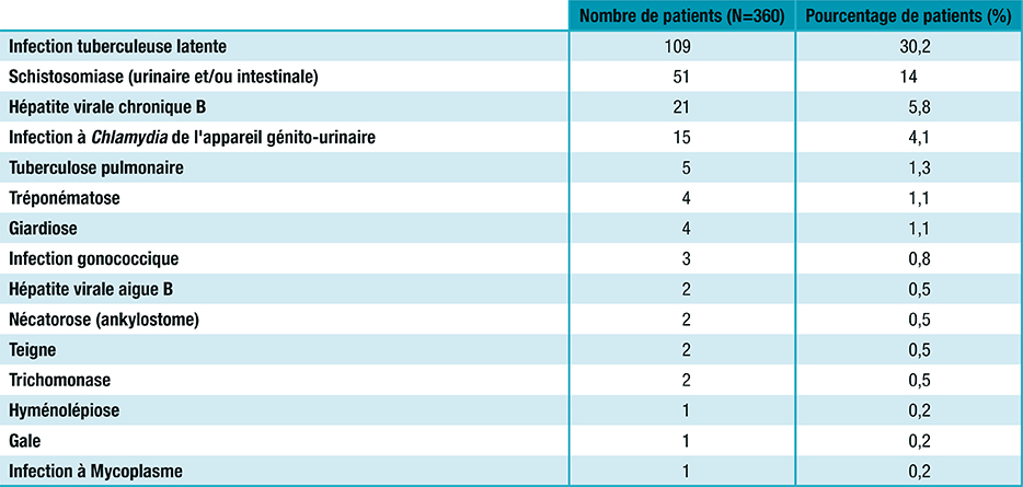 Tableau 2 : Infections diagnostiquées chez 360 mineurs non accompagnés du département de la Loire du 1er janvier 2022 au 31 décembre 2023