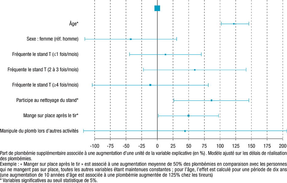 Figure 2 : Facteurs indépendants expliquant les plombémies des tireurs adultes de la société de tir A