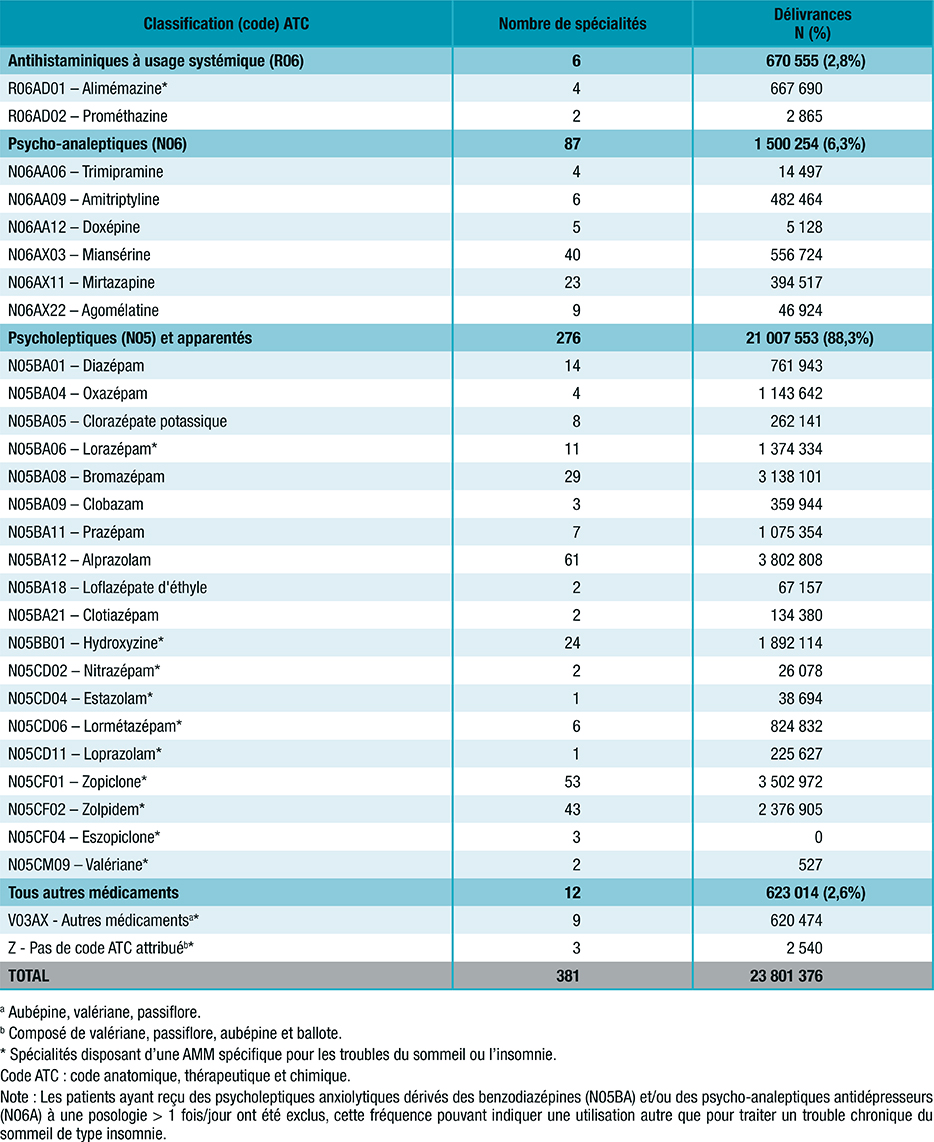 Tableau 1 : Substances et spécialités pharmaceutiques psychotropes à visée hypnotique délivrées dans l’unité urbaine de Paris
