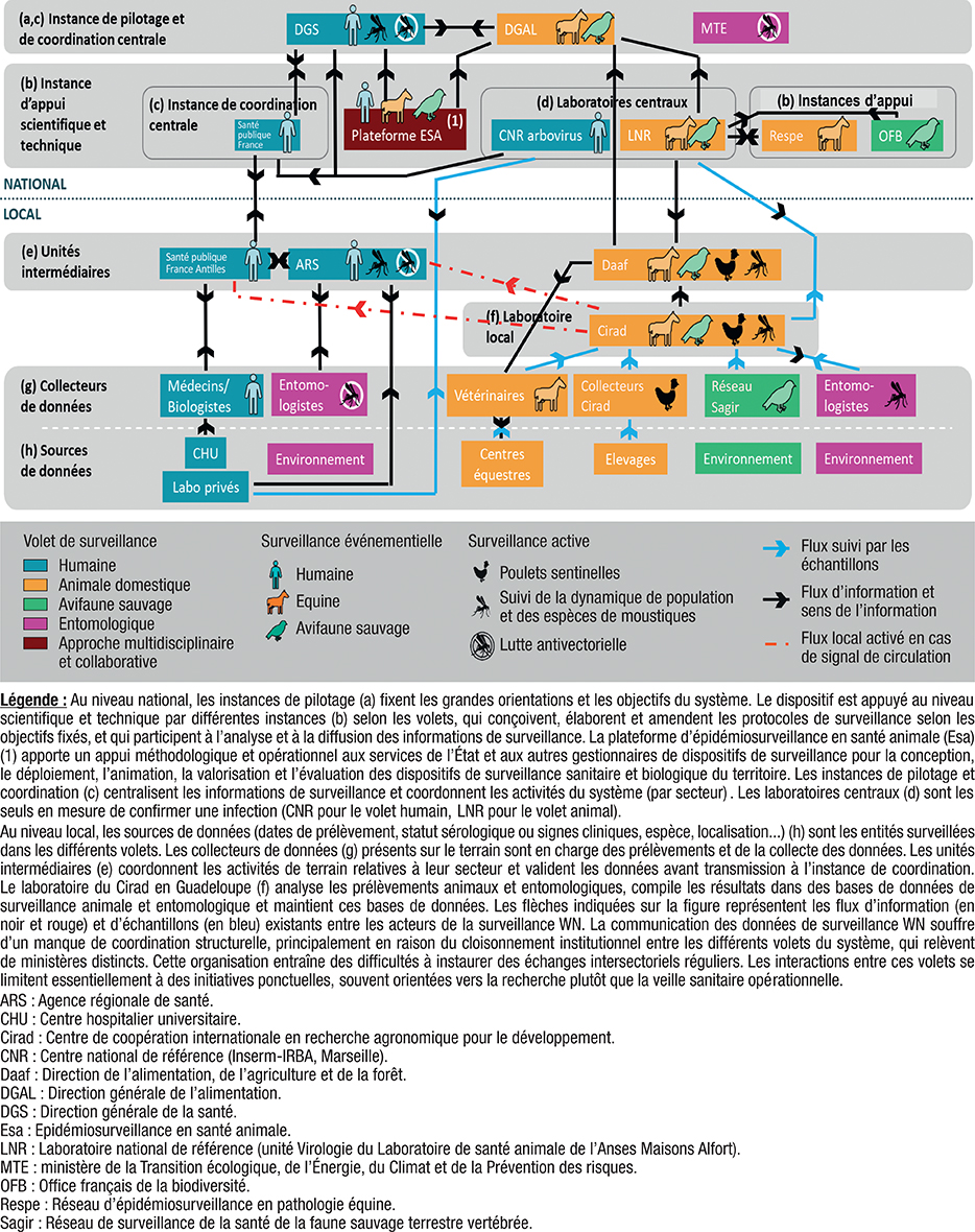 Figure 1 : Cartographie des acteurs du système de surveillance West Nile en Guadeloupe, 2023