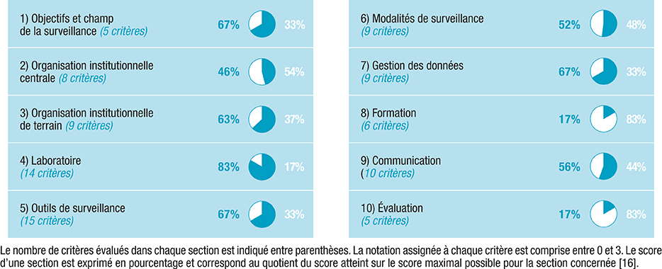 Figure 2 : Score attribué par les acteurs de surveillance sur les compartiments et les activités du dispositif de surveillance