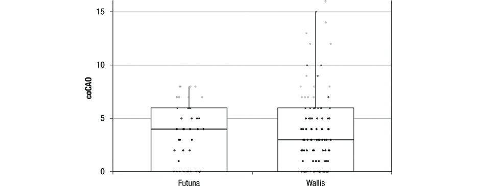Figure 1 : Distribution des indices coCAO chez les enfants âgés de 6 ans par île