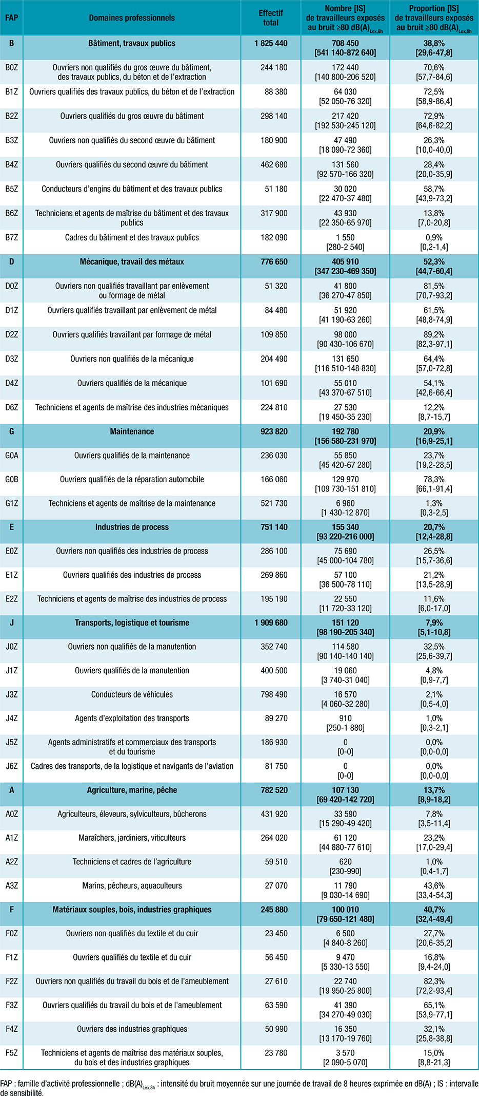 Tableau 6 : Nombre et proportion de travailleurs exposés au bruit ≥80 dB(A)