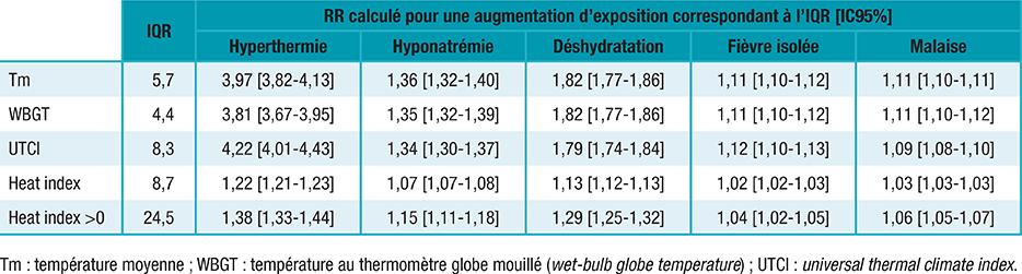 à l’intervalle interquartile (IQR) des 4 indicateurs d’exposition