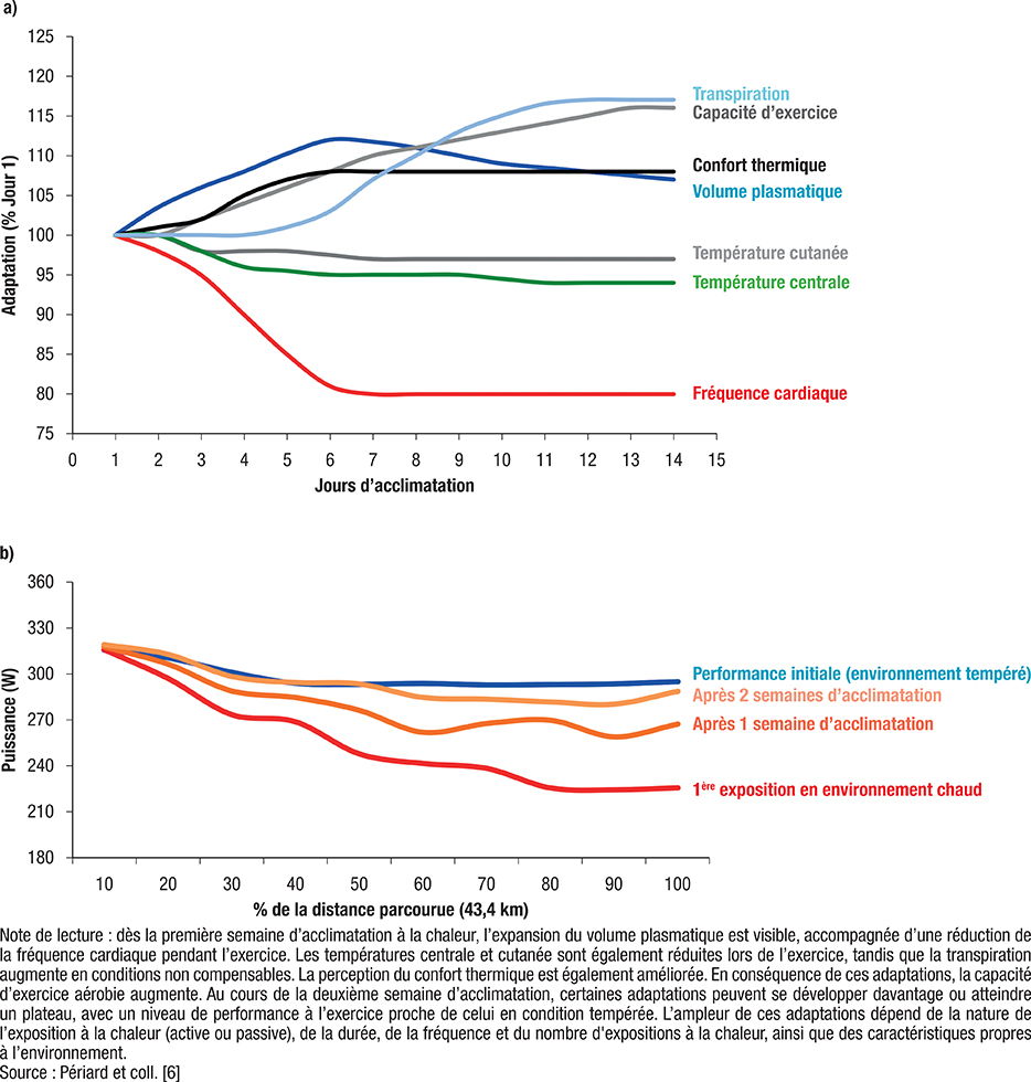 Figure 2 : Évolution des adaptations physiologiques (a) et physiques (b) induites par l’acclimatation à la chaleur