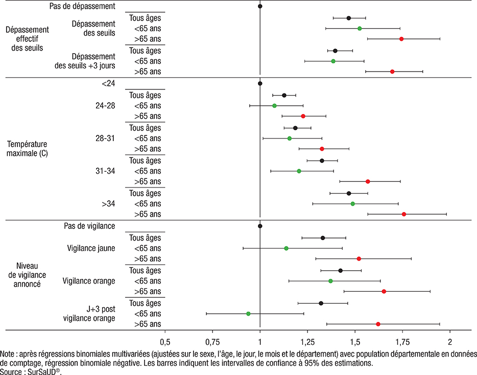 Dans l’article : Effet des canicules sur les passages aux urgences pour insuffisance rénale aiguë, décompensation cardiaque et ischémie myocardique