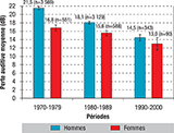 Les pertes auditives moyennes et les prévalences ont été calculées selon le sexe puis selon trois périodes, entre 1970 et 1979, entre 1980 et 1989 et entre 1990 et 2000. Cette stratification est basée sur les deux grandes dates où des nouvelles réglementations en droit du travail et protection des travailleurs ont été instaurées au niveau français ou européen, autour des années 1980 et ensuite autour des années 1990.