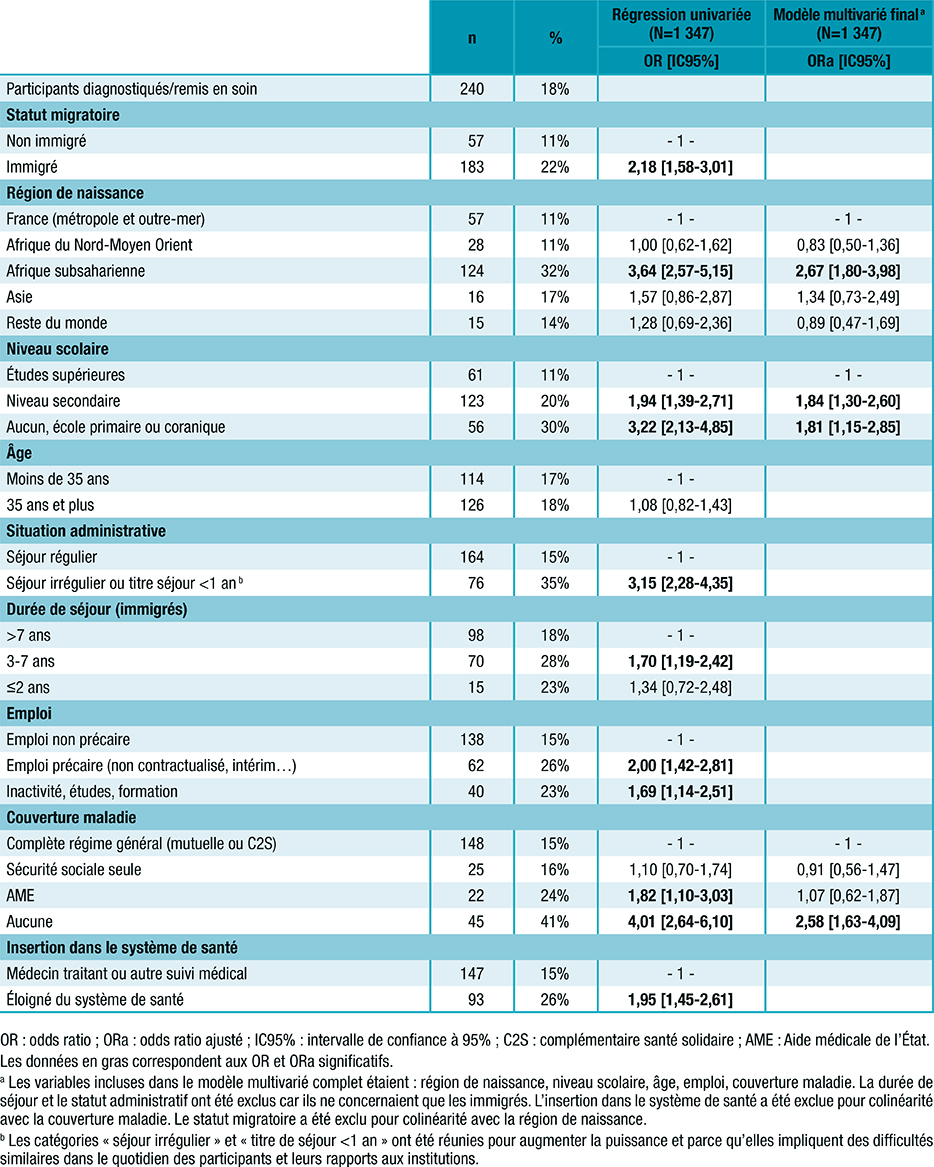 Tableau 2 : Facteurs associés à l’établissement d’un diagnostic ou à la remise en soins d’une pathologie en consultation prénatale