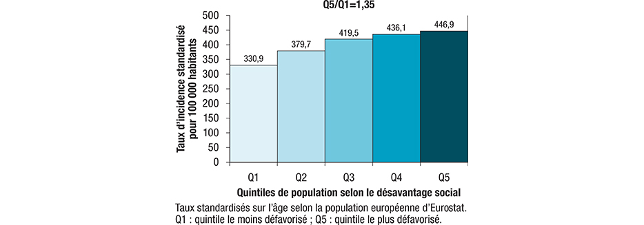 Figure 2 : Incidence annuelle des patients hospitalisés pour cardiopathie ischémique en fonction du quintile de désavantage
