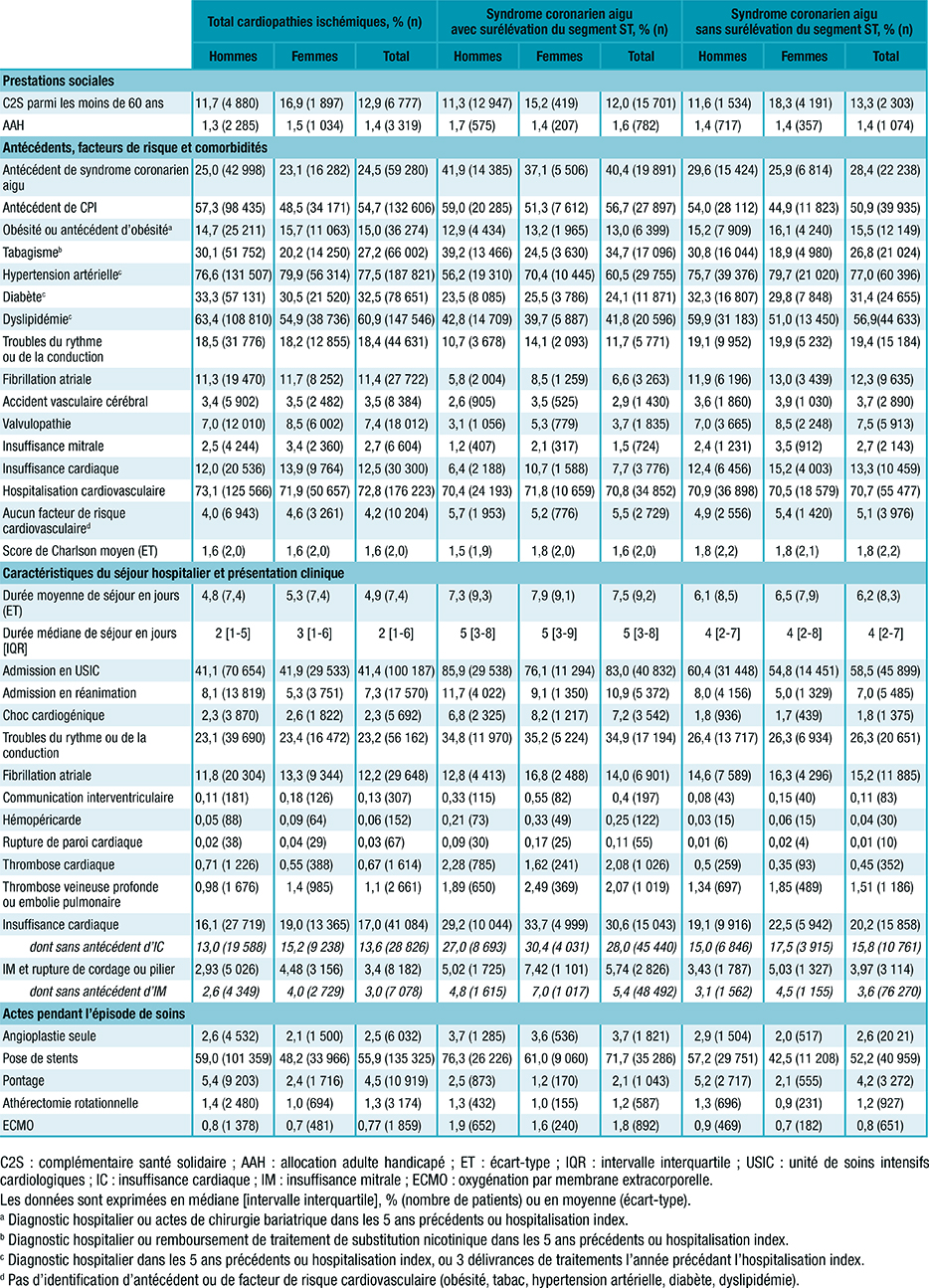 Tableau 2 : Caractéristiques des patients hospitalisés pour cardiopathie ischémique (CPI), France, 2022