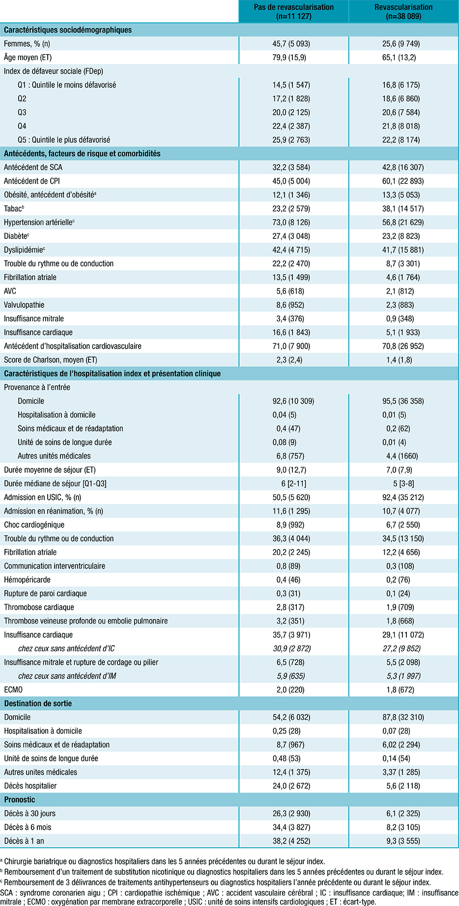 Annexe 2 : Caractéristiques des patients hospitalisés pour syndrome coronarien aigu avec sus décalage du segment ST, selon leur revascularisation, France, 2022