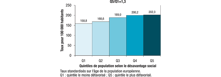 Figure 2 : Incidence annuelle des patients hospitalisés pour accident vasculaire cérébral (AVC) en fonction du quintile de désavantage