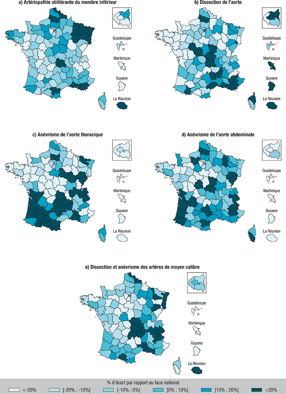 Figure 2 : Différences entre les taux départementaux standardisés sur l’âge de patients hospitalisés pour une maladie aortique