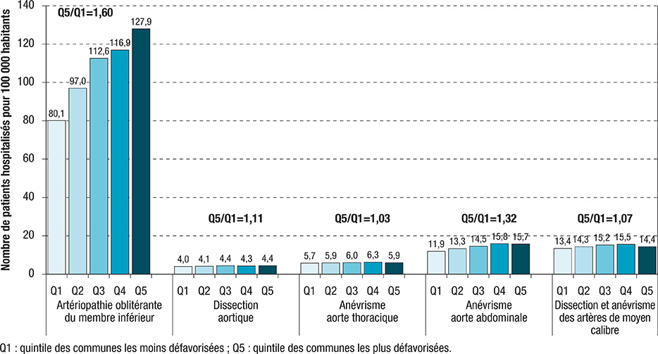 Figure 3 : Incidence annuelle des patients hospitalisés pour maladie aortique ou artérielle périphérique en fonction du quintile