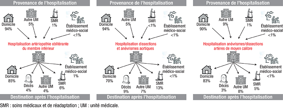 Figure 4 : Provenances et issues d’hospitalisation pour une maladie aortique ou artérielle périphérique, France, 2022