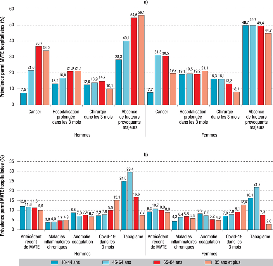 Annexe : Prévalence des facteurs de risque provoquants majeurs (a) et non provoquants (b) parmi les patients hospitalisés