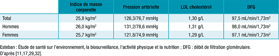 LDL et du débit de filtration glomérulaire chez des adultes de 18 à 74 ans, France hexagonale, étude Esteban, 2015