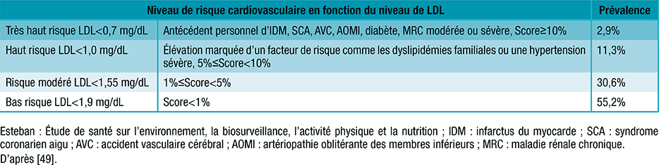Tableau 2 : Distribution de la population française hexagonale âgée de 18 à 74 ans, selon le niveau de risque cardiovasculaire