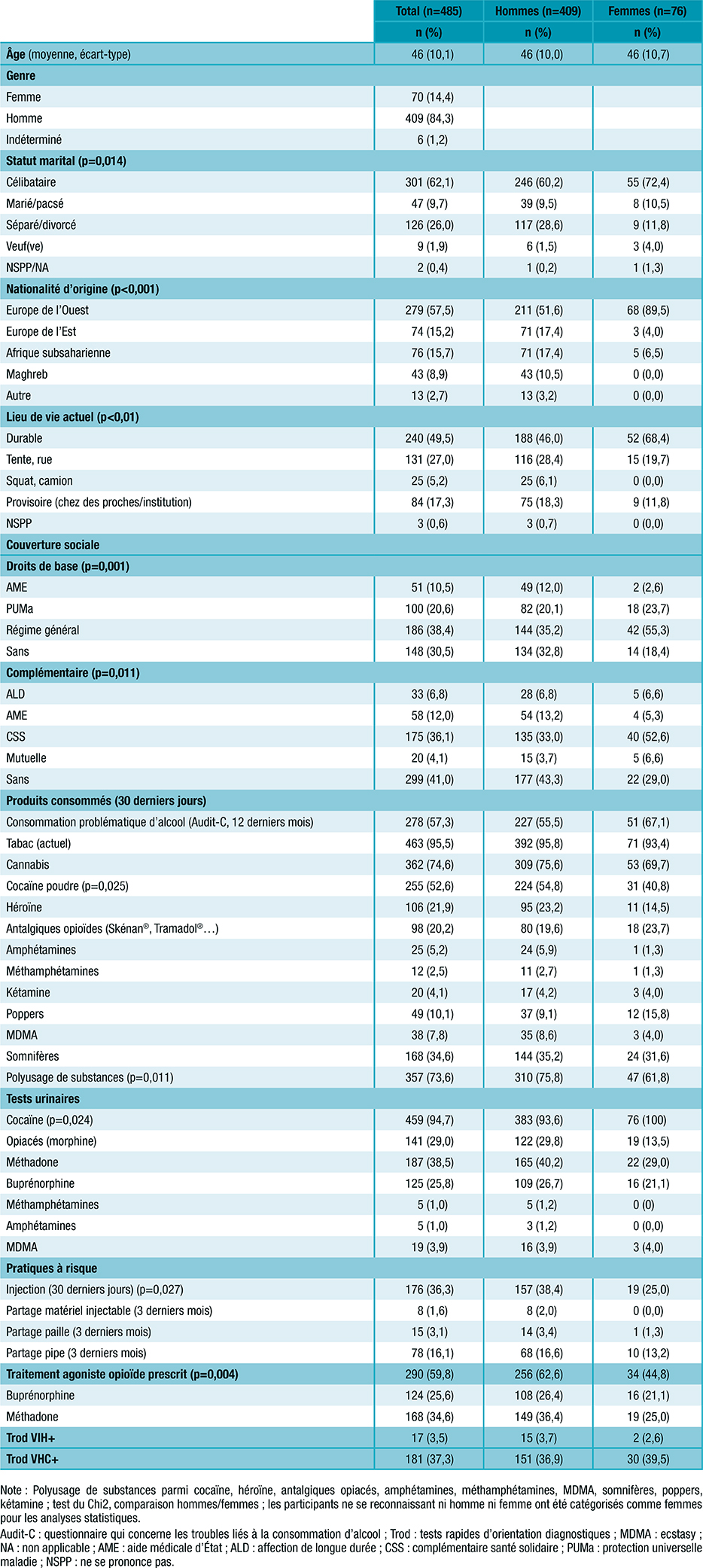 Tableau 1 : Caractéristiques sociodémographiques, usage de substances et pratiques à risques