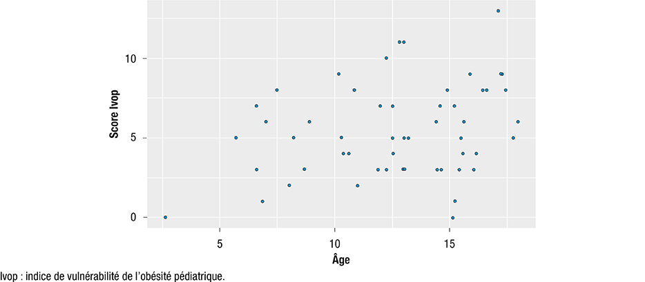 Figure 1 : Distribution du score Ivop en fonction de l’âge (n=53)