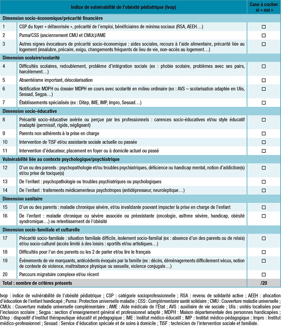 Tableau 1 : Indice de vulnérabilité de l’obésité pédiatrique (Ivop)