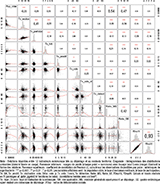 Agrandir l'imageLe nuage de points met en lumière une structure de corrélations cohérente, mais contrastée (figure 4). Les FDep15 et FDep20 sont presque superposables (r≈0,93), ce qui confirme leur redondance et la robustesse de l’indicateur territorial. Les Ratio_MG_pop_cible et Ratio_GE_pop_cible montrent une corrélation négative avec deux I_performance majeur (Tx_brut_participation et Tx_colo) et une corrélation positive avec la population cible (r≈0,52) et la Tx_colo_mois (r≈0,1), suggérant que les communes les plus « fournies » en effectifs médicaux ont une facilité d’accès à la coloscopie (court délai), mais n’y sont pas encouragées (faibles taux de réalisation). Les distributions univariées (diagonales) révèlent des asymétries marquées – la population cible et plusieurs ratios sont fortement dissymétriques tandis que l’indice FDep20 suit une distribution gaussienne –. Au total, la matrice signale une forte cohérence entre indices territoriaux et des relations plus discrètes, mais statistiquement pertinentes, entre caractéristiques de l’offre médicale et indicateurs de performance.