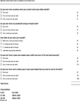 Outre les questionnaires de l’EORTC de qualité de vie spécifique de la maladie cancéreuse QLQ-C30 et son module QLQ-CR29 dédié au cancer colorectal, plusieurs scores validés évaluant les fonctions génito-urinaires sont utilisés dans la littérature. La dysfonction urinaire est évaluée chez l’homme à l’aide du score International Prostate Symptom Score (IPSS) comportant 8 items. Chaque item (vidange incomplète de la vessie, fréquence des mictions, mictions intermittentes, impériosité, jet faible, efforts à la miction et nycturie) est codé de 0 (absent) à 5 (sévère), classant la dysfonction urinaire en légère (0-7 points), modérée (8-19) ou sévère (>20 points). Chez la femme, l’Urinary Symptom Profile (USP) ou l’International Consultation on Incontinence (ICIQ) est utilisé pour mesurer l’incontinence urinaire à l’effort ou par impériosité 28.