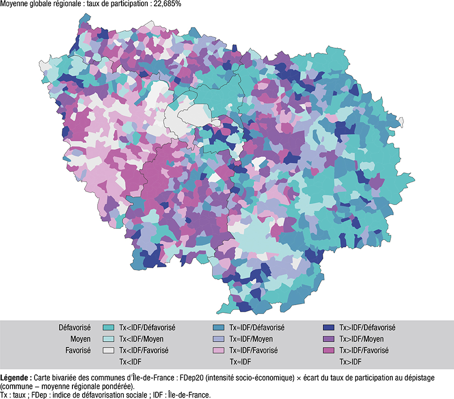 Figure 1 : Taux de participation en fonction de l’indice de défavorisation sociale (FDep20), Île-de-France