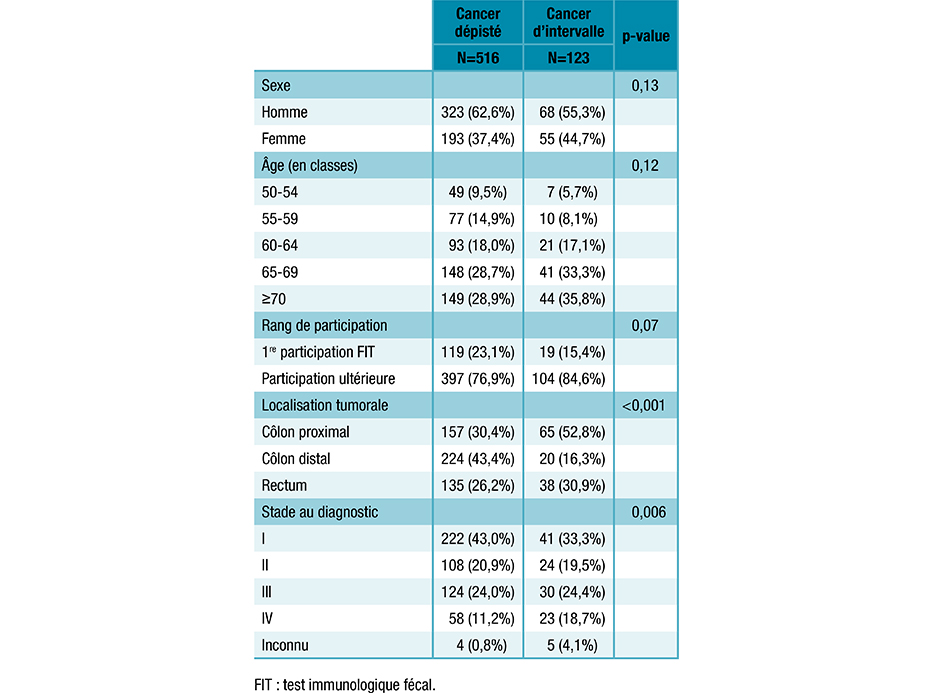Tableau 1 : Caractéristiques des cancers dépistés et des cancers d’intervalle