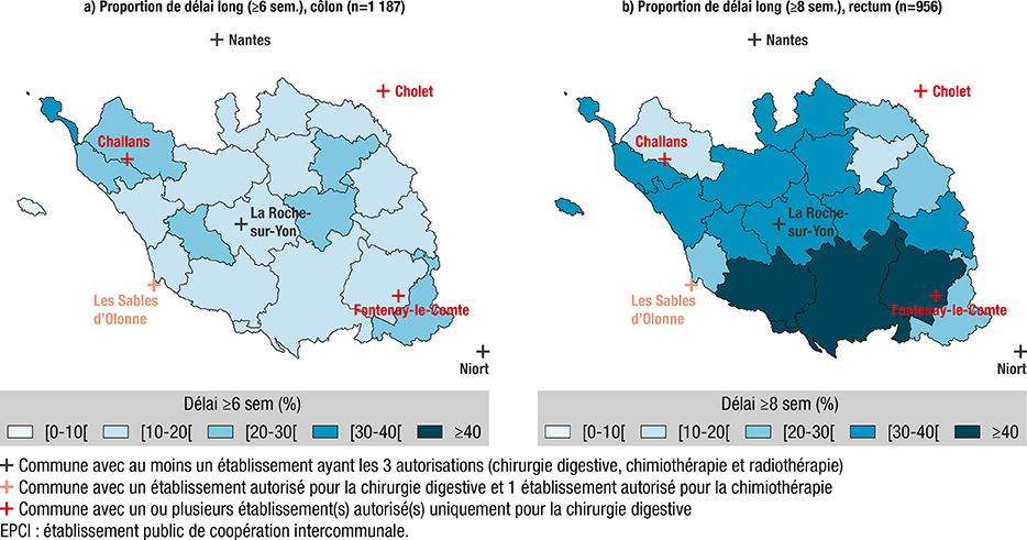 Figure 2 : Cartographie par EPCI de la proportion de délai long chez les patients vendéens atteints de cancers invasifs colorectaux