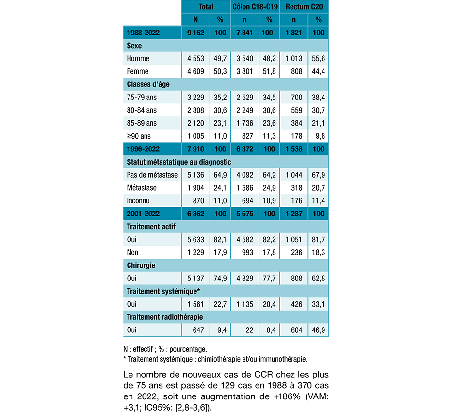 Dans l’article : Spécificités des cancers colorectaux chez les personnes très âgées dans l’Hérault, étude à partir d’un registre de population : incidence, stade, prise en charge thérapeutique et survie, tendances chronologiques de 1988 à 2022