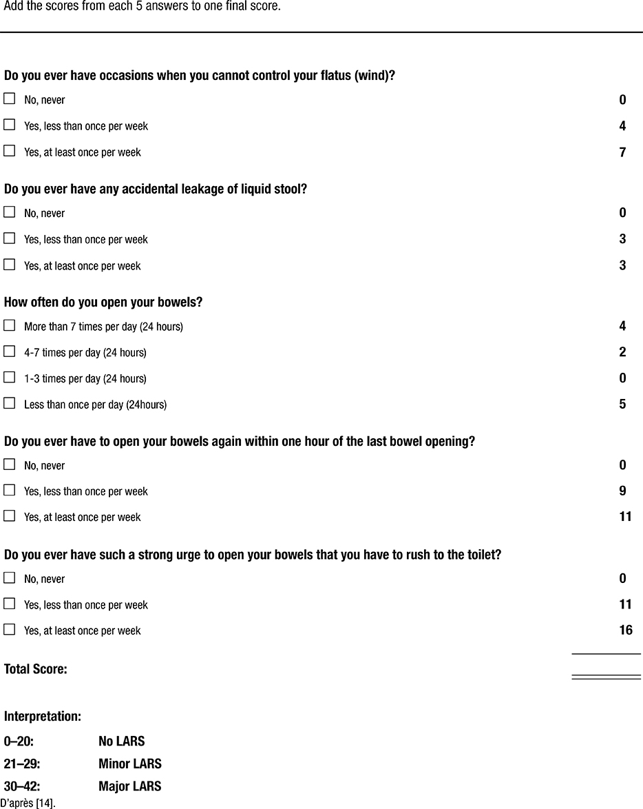 Figure 2 : Score LARS – Instructions de cotation