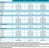 La probabilité de réalisation de la coloscopie variait selon la classe d’âge et le délai considéré. À 1 mois, les ORa étaient légèrement plus élevés chez les personnes âgées de 60 à 69 ans par rapport à la classe de référence des 49-54 ans (60-64 ans : 1,09 [1,04-1,15] ; 65-69 ans : 1,07 [1,02-1,13]) (tableau 2). Aucune différence significative n’a été observée pour les autres classes (55-59 ans et 70-75 ans). Une tendance similaire a été constatée pour la réalisation de la coloscopie à 3 mois. En revanche, à 24 mois, la relation s’inversait : toutes les classes d’âge présentaient des ORa inférieurs à 1, traduisant une moindre probabilité de réalisation de la coloscopie par rapport aux 49-54 ans, en particulier chez les 70-75 ans (0,86 [0,84-0,89]).